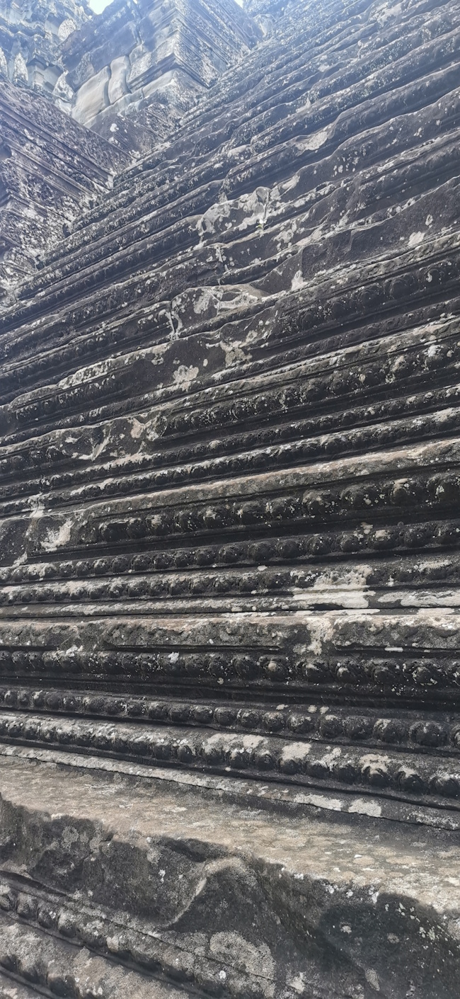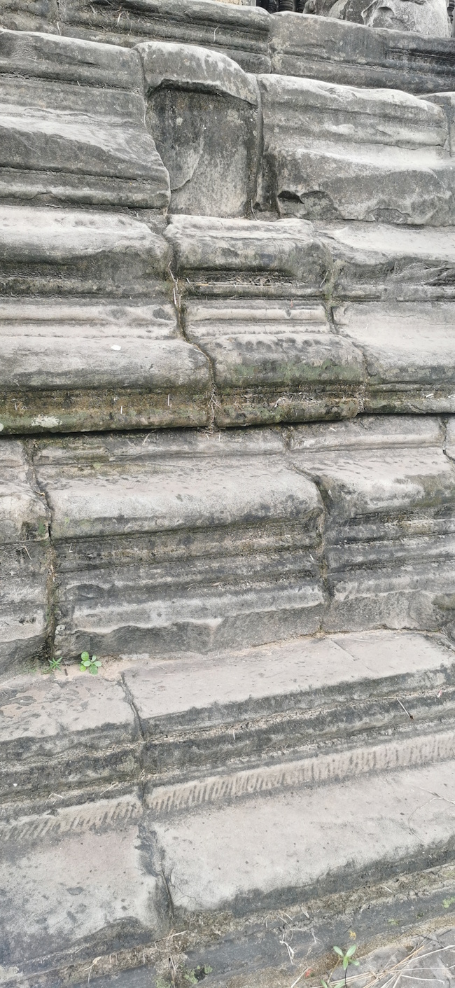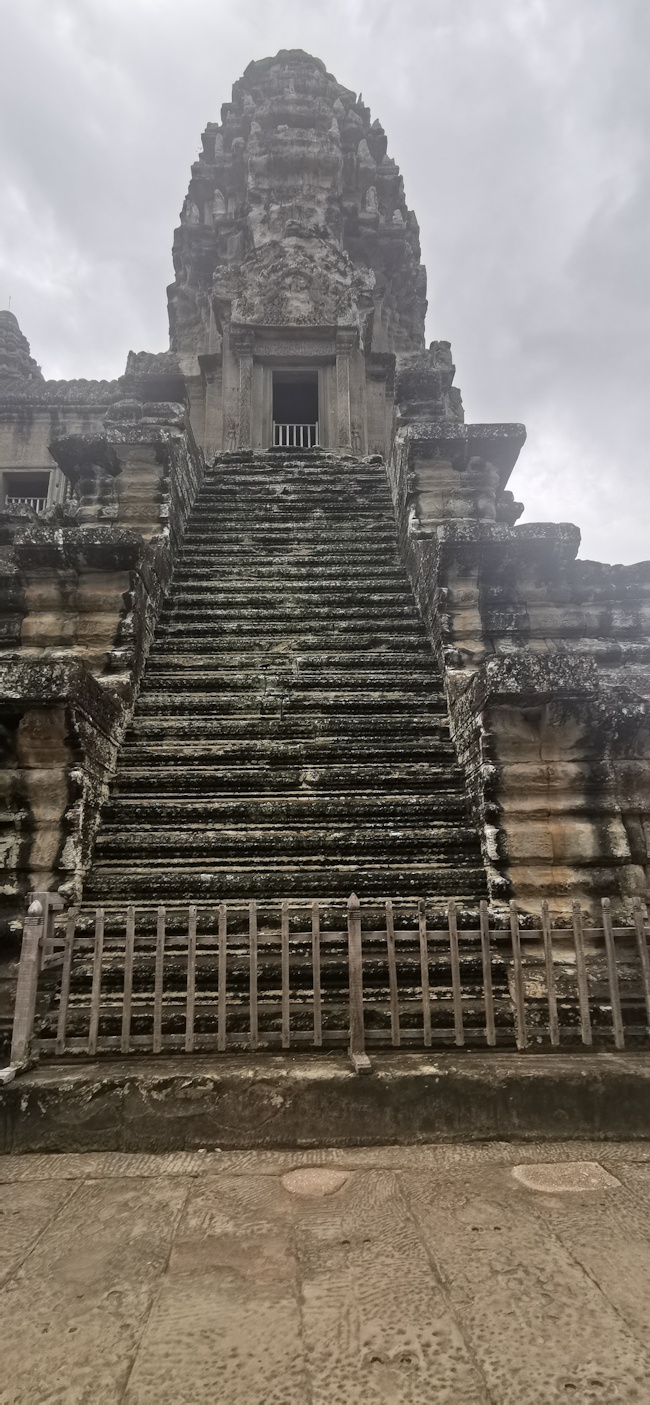 私たちの現代社会の建築において、建物の階段の傾斜角度は30~40度と言われるのに対して、クメール建築においてはこれが70度となる。しかも長い階段途中に踊り場はなく、滑落したらと思うと本当に恐ろしくなる。とりわけ雨天の場合にはどうなるのかと思う。実際に数少なくない事故が起きてきたようだ。