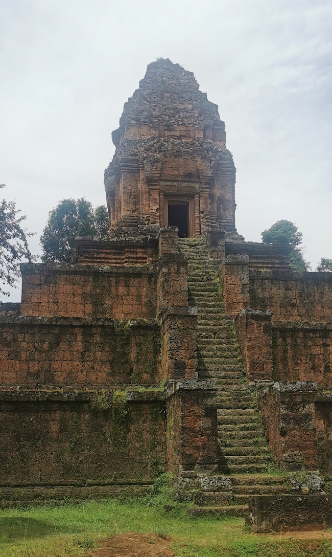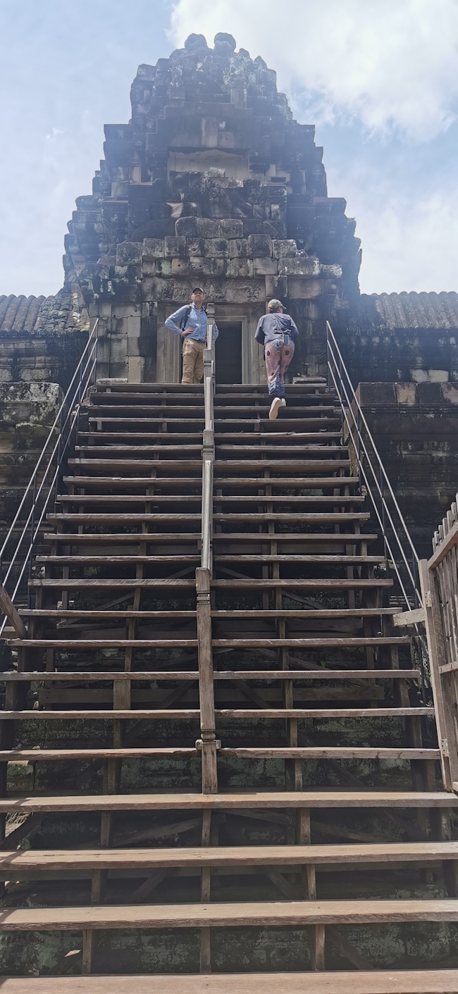 クメール建築において、特徴的なもののひとつとして「急階段」がある。とにかく傾斜角度にと大変厳しいものがある。しかもステップのひとつひとつの幅が非常に狭く、つま先しかかからない程度のものも多い。