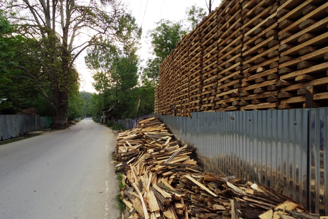国道脇で木材が大量に積まれている。このあたりはクリケットのバットの材料となる柳の木(日本のしだれ柳とはだいぶ違う感じ)の産地として知られており、国道沿いにはバット作成のために削り出した木材が山積みされている。クリケットの世界では、オーストラリアとともに世界をリードするインドを下支えしているのがカシミールのバット生産といえるのかもしれない。
