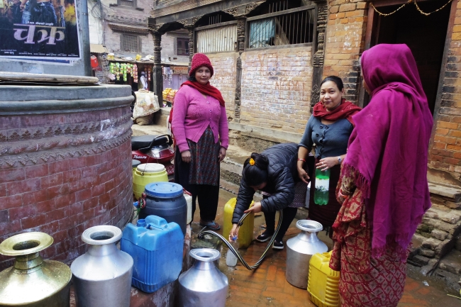 バクタプルにて。これぞまさに文字通りの井戸端会議。