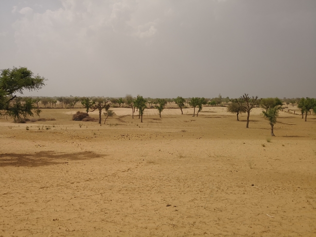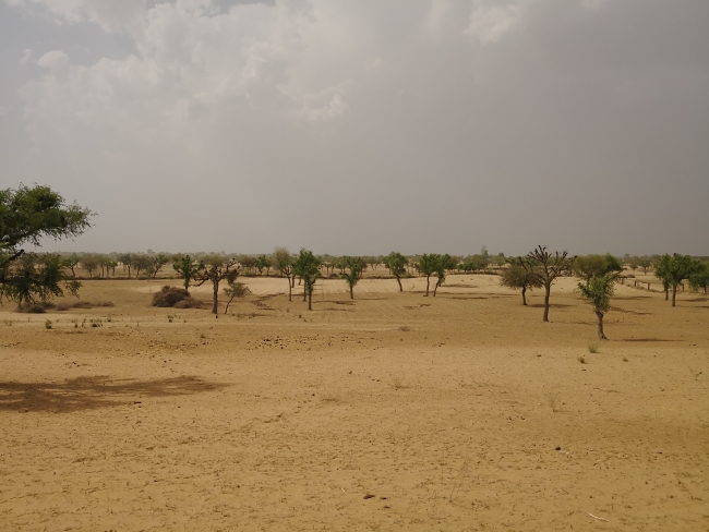 シェカワティー地方で町を出ると延々と続く砂漠の風景。