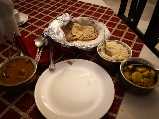 アルスィーサル2 シェカワティーの食事でやや不便なところは、手頃な安飯屋がほとんどないところだ。町角のサモーサーのスタンドを除けば、デリーやジャイプルなどから訪れるインド人観光客向けのホテルに付設されたレストランとなり、アップマーケットで仰々しく、注文してから時間もかかるので面倒くさい。 地元の人たちの間で中間層がほとんどなく、外食文化が存在し得ない経済水準なので、仕方のないことではある。