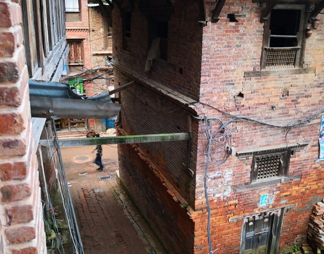 バクタプルの宿であてがわれた部屋は、「本館」から少し離れたところにあるネワール式の長屋みたいな建物の中にある部屋。宿のオーナーが最近買い取っただか、借り上げただかで、客室に転用したそうだ。そんなわけで、あたかも地元の人の家の中の部屋を借りて滞在しているような感じなのは良い。