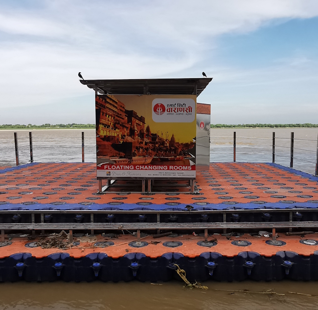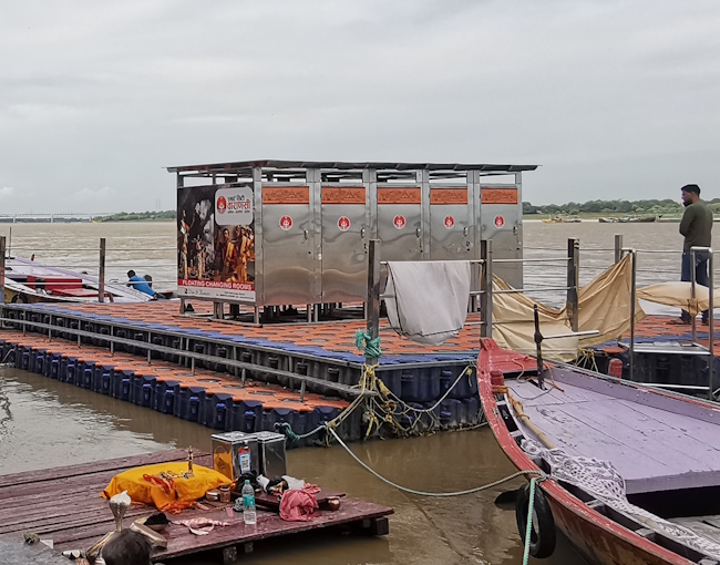 今どきはワーラーナスィーのガートでは、更衣室が用意されている。もっと昔からあればよかったのだが、現在はいくつもそうしたものがあるのは幸いなことである。ちょうど日本の海水浴場の簡易更衣室のような具合だ。