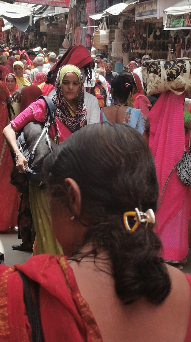 プシュカルに着いたら「この世の中には女性しかいないのか?」と思うくらいものすごく大勢の女性たちが、まるで川の流れのように動いている。