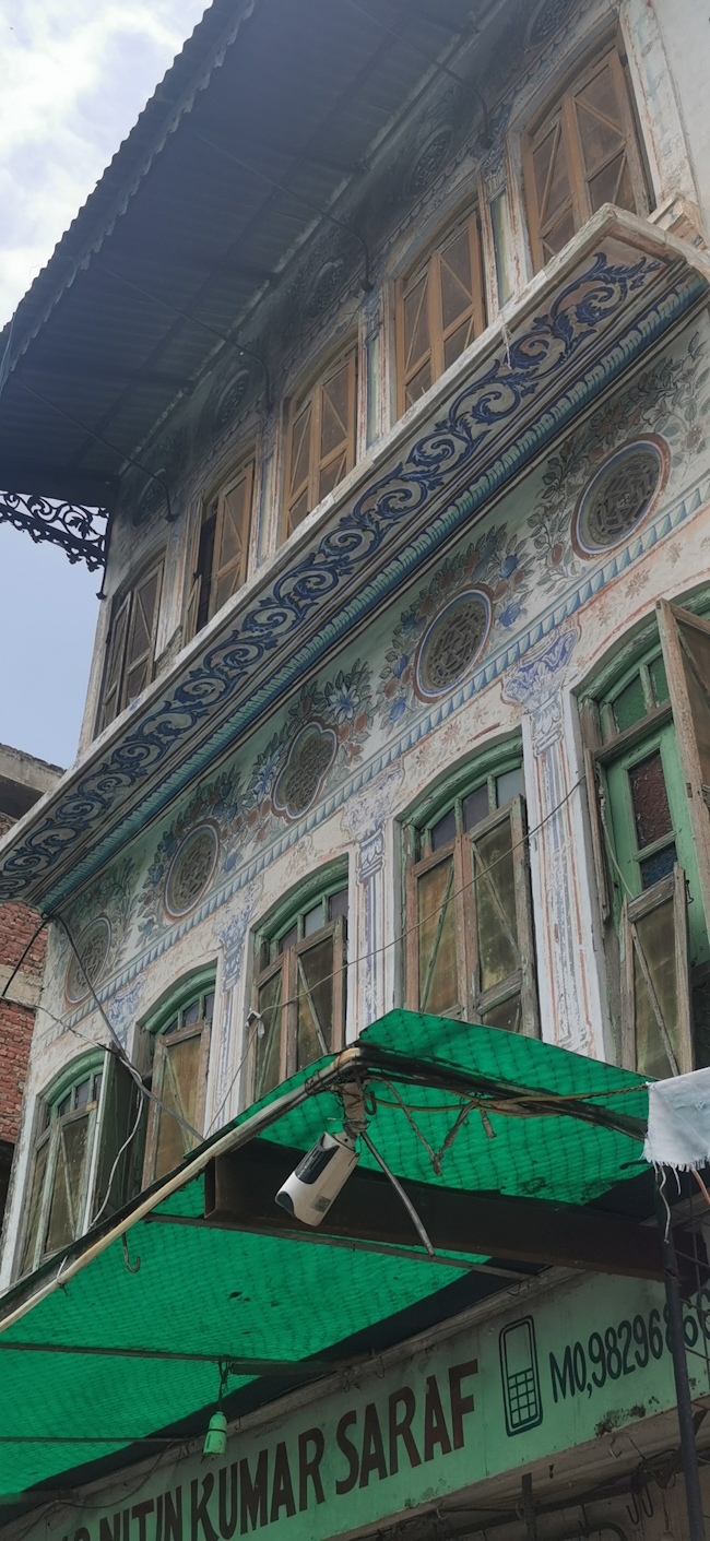 ここには、まだまだ古い建物が残っていて、眺めながら歩いているだけでも楽しい。窓飾りとか持ち送りとか、よそ者でも中に入れる建物(店やゲストハウスなど)では、ハヴェーリー内のチョウクとそれを取り巻く部屋の扉なども見られて興味深い。