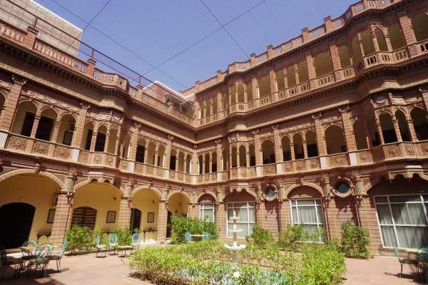 ゴミゴミした旧市街にあるのだが、敷地に一歩踏み入れると全くの別世界となる。今も所有しているのはラームプーリヤーの人物であるとのこと。屋敷というよりも宮殿と表現したくなるような華やかさだ。私はここに宿泊してはいないが、一泊4,500Rsくらいからのようだ。