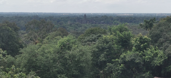 クメール語で「中央の山」を意味するというプノムバケンだが、ここから広大なアンコール遺跡が広がるエリアを見下ろすことができる。ここから眺めるアンコールワットやアンコールトムの景観を期待して登ったと聞いていた。