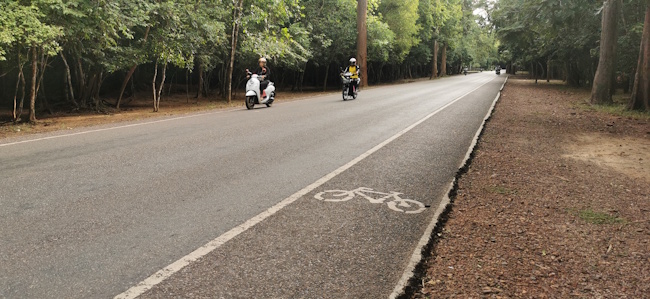 シェムレアプから郊外にかけて、こんな自転車専用レーンがしつらえてある。コロナ禍のときに失業対策も兼ねて財政出動して造らせたとのこと。