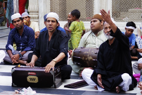 せっかくデリーに来たので、ニザームッディーンのダルガーに参拝。スーフィーのチシュティー派の聖者、ニザームッディーン・アウリヤーの墓廟。境内で演奏しているカッワーリーを聴きながら、しばし陶酔の時間を過ごすことができる。ムスリムだろうがヒンドゥーだろうが、はてまた外国人だろうと誰でもウェルカムな包容力がいい。祝祭の時期ではないこともあり、金曜日の割には空いていて、本殿で楽に祈ることができた。清浄な気分になってダルガーを後にする。