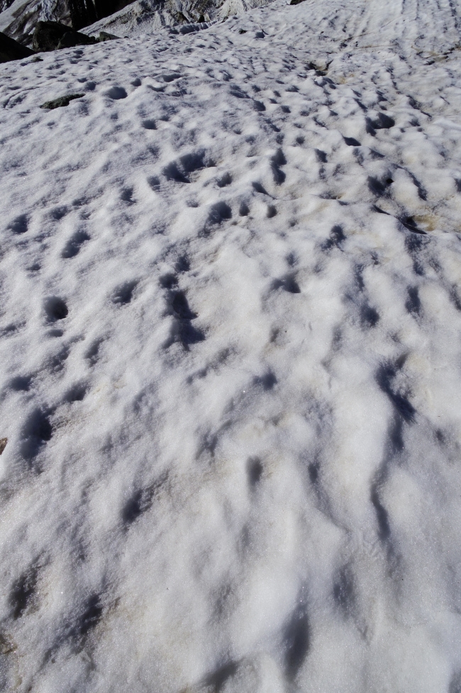 集落を過ぎると土砂崩れの跡のようなものが見えるが、これは雪渓であった。