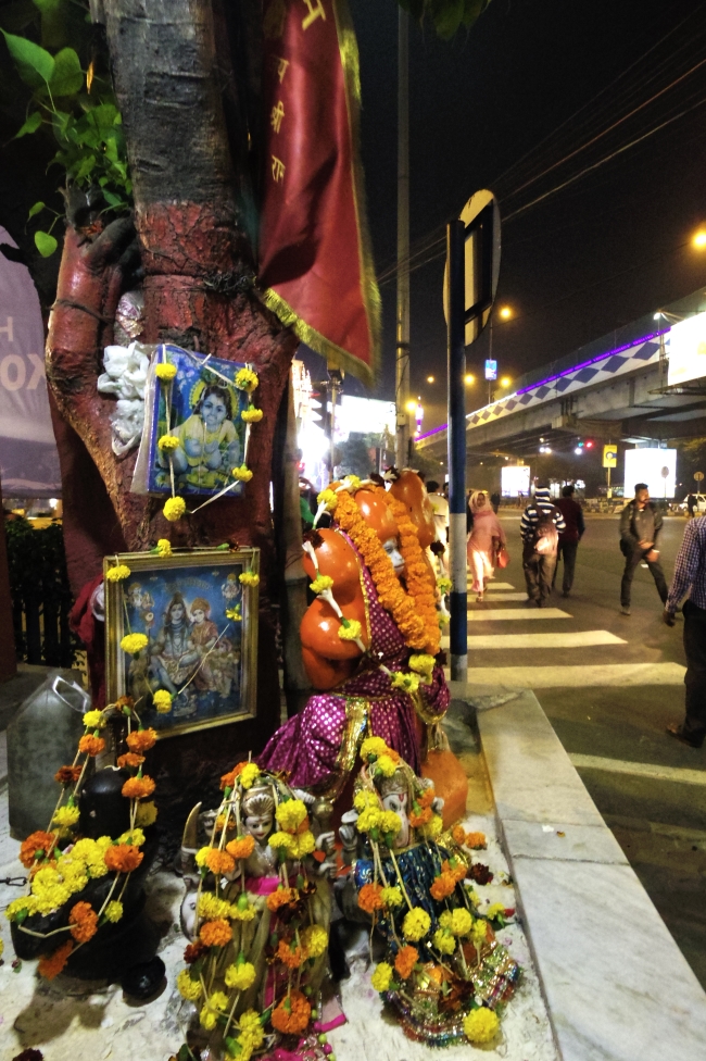映画「PK」に出てきた、迷信や盲信を風刺するひとこまを思い出したりもする。大きな木の根元に石を立てて、紅いティーカーを付ける。そこに小銭をいくばくか置いておくと、そこを通りかかる何人もが手を合わせて賽銭を重ねる。地面に跪いて祈る人やお札を置く人も出てくる。そうして集まってくる人たち目当てのスナック売りなども登場して・・・といった具合。