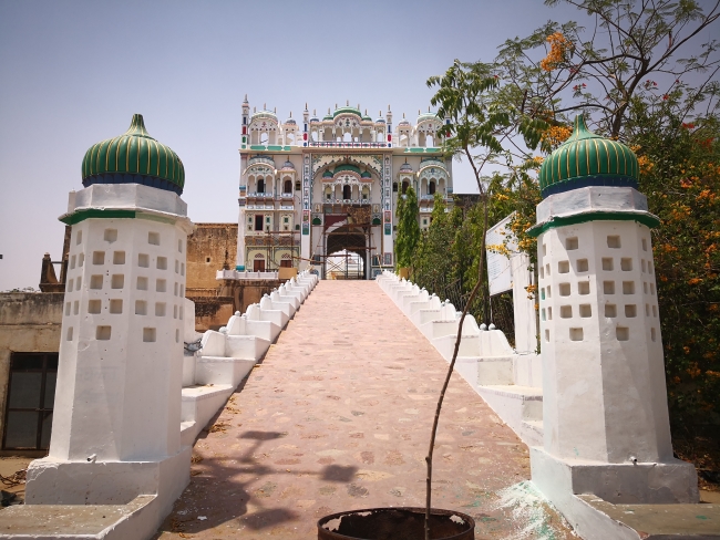 ジュンジュヌーのイスラーム地区にあるムスリムのフレスコ画ハヴェリーだ。場所がどのあたりかよくわからなかったので、ムスリム地区にあるDargah of Kamaruddin Shahを目標に移動してみる。ダルガー自体にも、シェカワティらしいフレスコ画があしらわれており、なかなか見応えがある。