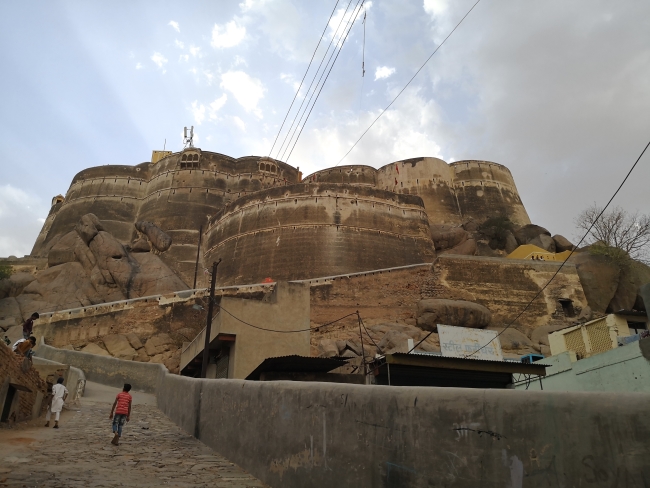 この日最後に訪問したのはラクシュマンガル。いろいろ見どころのありそうな町なのだが、いかんせん到着した時点で午後6時。市街地の丘の上にあるフォートに上ってみた。途中に小さなお寺があるのみで、特に何か残っているわけではなさそうだ。