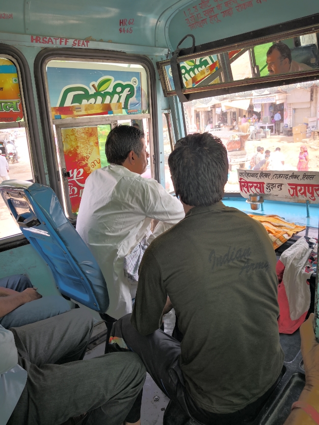 私が乗ったのは、ジャイプルからスィルサーへと向かうところである。いわゆる「インターステート」で往来しているバスだが、地域色が感じられるのがいい。