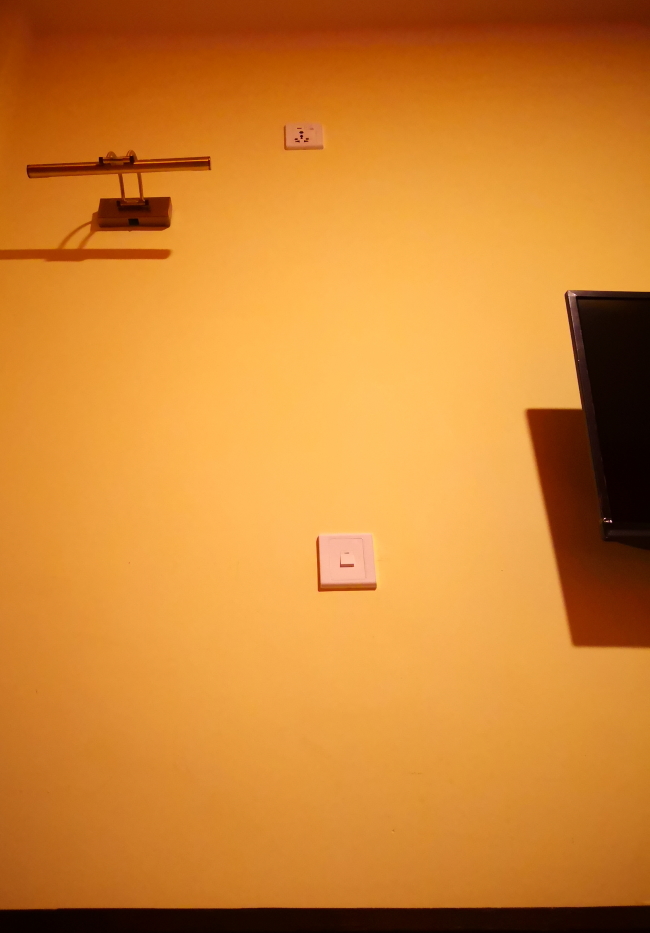 旅先で充電すべきデバイスが複数ある。 よって、このコンセントも動員かけたいのだが、なんでこんな上にあるのか? 背を伸ばしても届かず。 残念・・・。