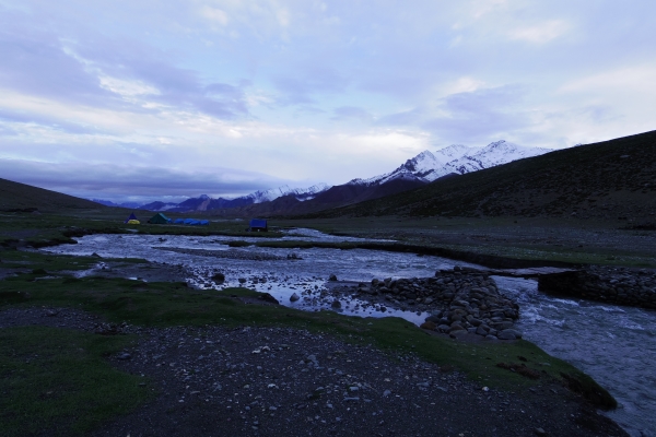 後でレーに戻ってから再会したイギリス人とフィリピン人でキャンプ用品持参でトレックに来ていたカップルによると、彼らはもっと遅い時間帯に通過したようで、腰までの深さのところがあったり、フィリピン人女性のほうは、急流の中で転んでしまったりと、かなり大変だったようだ。